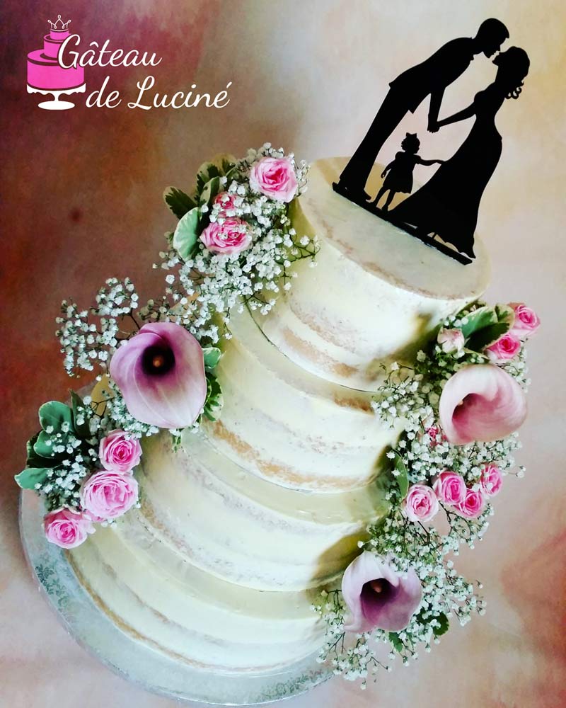 Les couches sont recouvertes d'un naked cake style minimaliste.